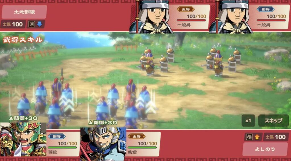 中盤以降は、単体火力型よりも範囲攻撃スキルやデバフ(混乱・士気低下など)を持つ武将が活躍しやすく、戦闘で安定して勝ちやすくなる。