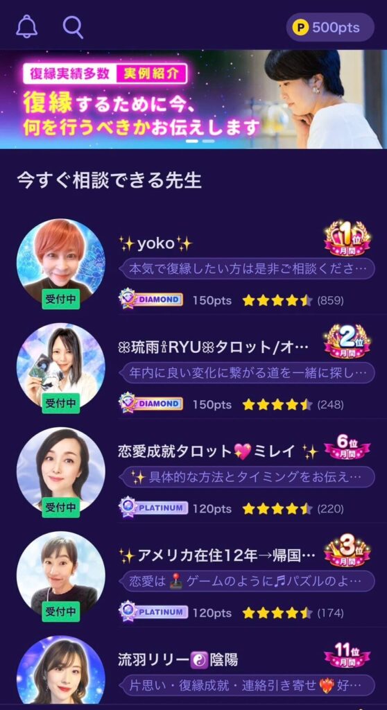 占術もタロットや霊視、スピリチュアル系など幅広くて、