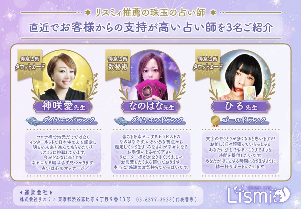 当たるという口コミも多く、特に気持ちの読み取りや恋愛相談に強い印象。