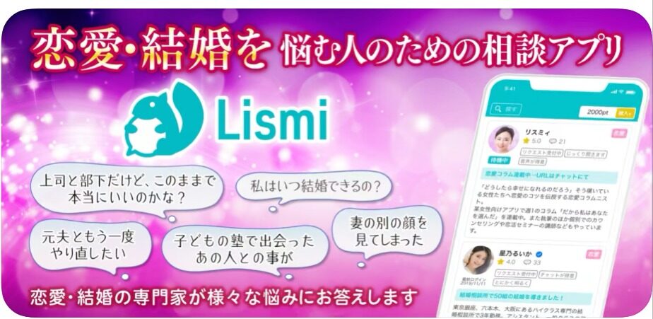 【リスミィ】は、恋愛の不安を今すぐ誰かに聞いてほしい人に向いてる占いアプリ。