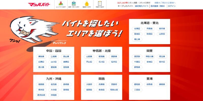 【マッハバイト】は全国対応で、都市部は特に求人数が多い。