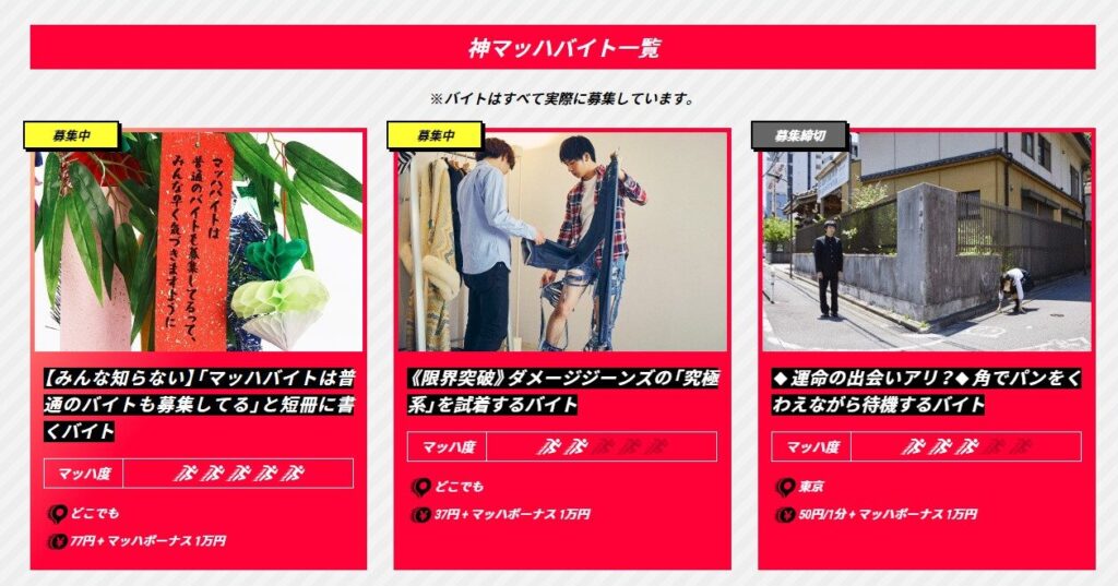【マッハバイト】には短期や期間限定の求人も掲載されている。