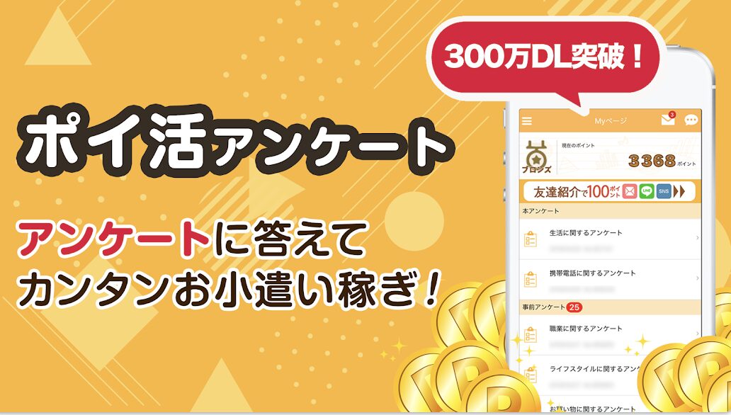スマホ1つでできる手軽さから、「お小遣い稼ぎの定番」として長年人気のポイ活サイトだよ。