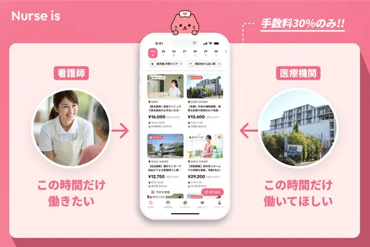【nurse is】は、看護師に特化した単発バイトアプリ。