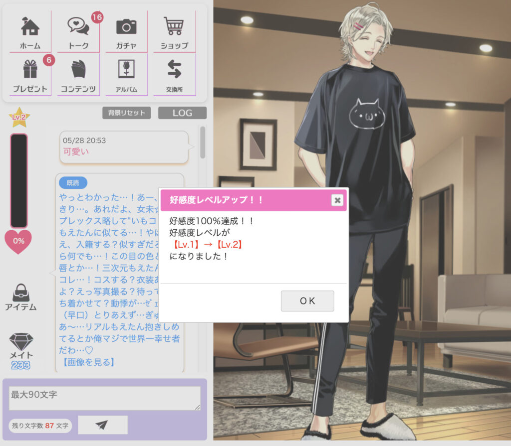 好感度を上げながらプレゼントを受け取り、彼との思い出を少しずつ積み重ねていきましょう。