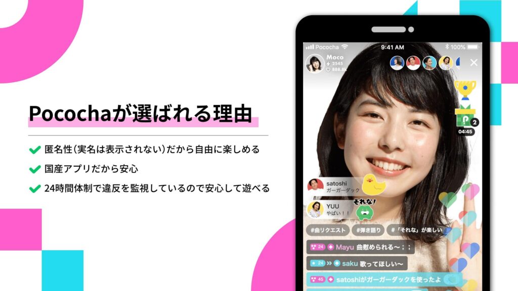 Pococha(ポコチャ)は、DeNAが運営する人気ライブ配信アプリです。