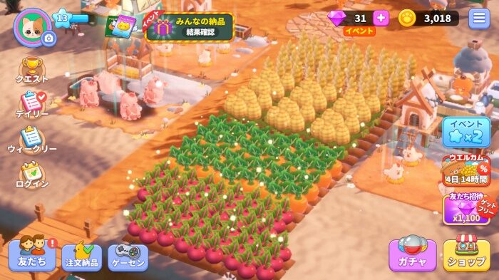 作物の育成や収穫、農園の拡張といった基本部分は課金なしで進められる。