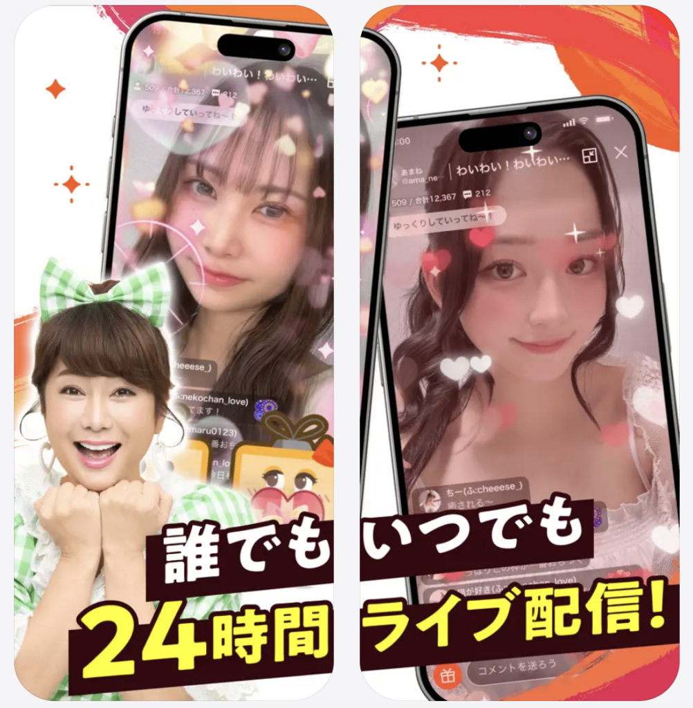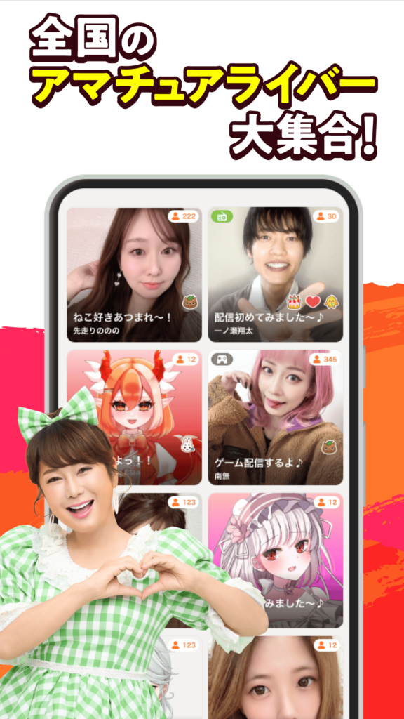 初心者でも入りやすい空気感があるから、はじめてのライブ配信にも選ばれてるよ。